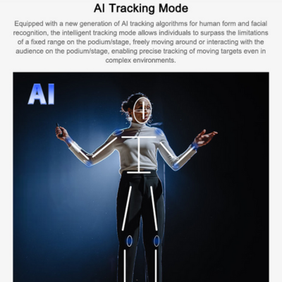 Supports intelligent tracking, automatic framing, and gesture recognition functions. It enables control through five types of gestures, such as activating/deactivating intelligent tracking and automatic framing, switching tracked targets using gestures, customizing tracking sizes, and zooming in/out the lens through gesture control.
